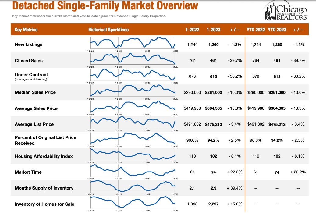 January and February are both transition months, so take this data with a grain of salt and remember Q1 of 2022 was bonkers in Chicago. However, if we continue to see more supply, then expect that to negatively impact housing prices.